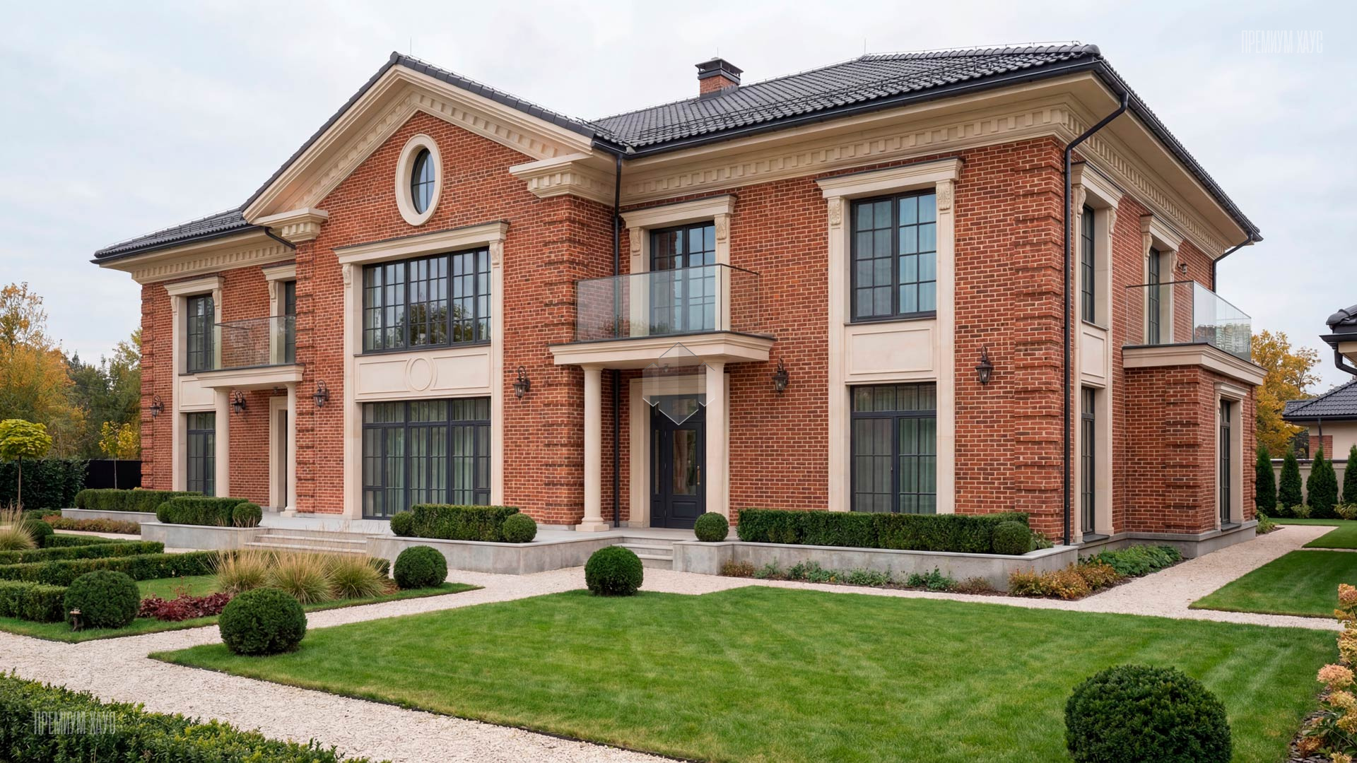 • ФасадКирпич ручной формовки + арх-бетон