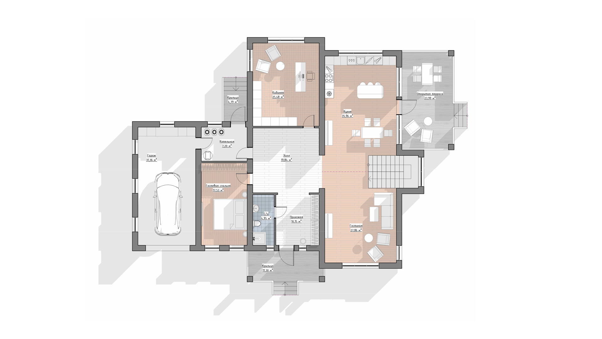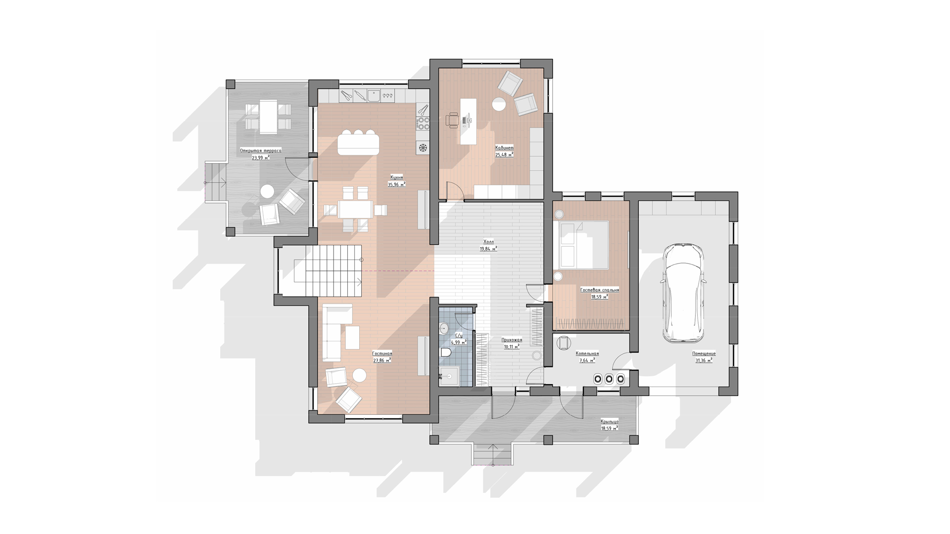 Проект включает архитектурные решения, планировки, фасады, конструктивную часть и при необходимости инженерные разделы. Состав проекта определяется задачами и уровнем детализации.