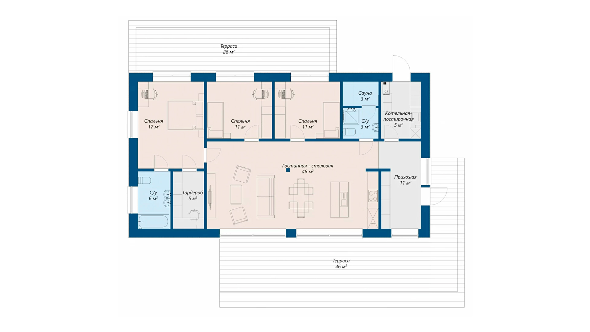 Одноэтажный коттедж 118 м2