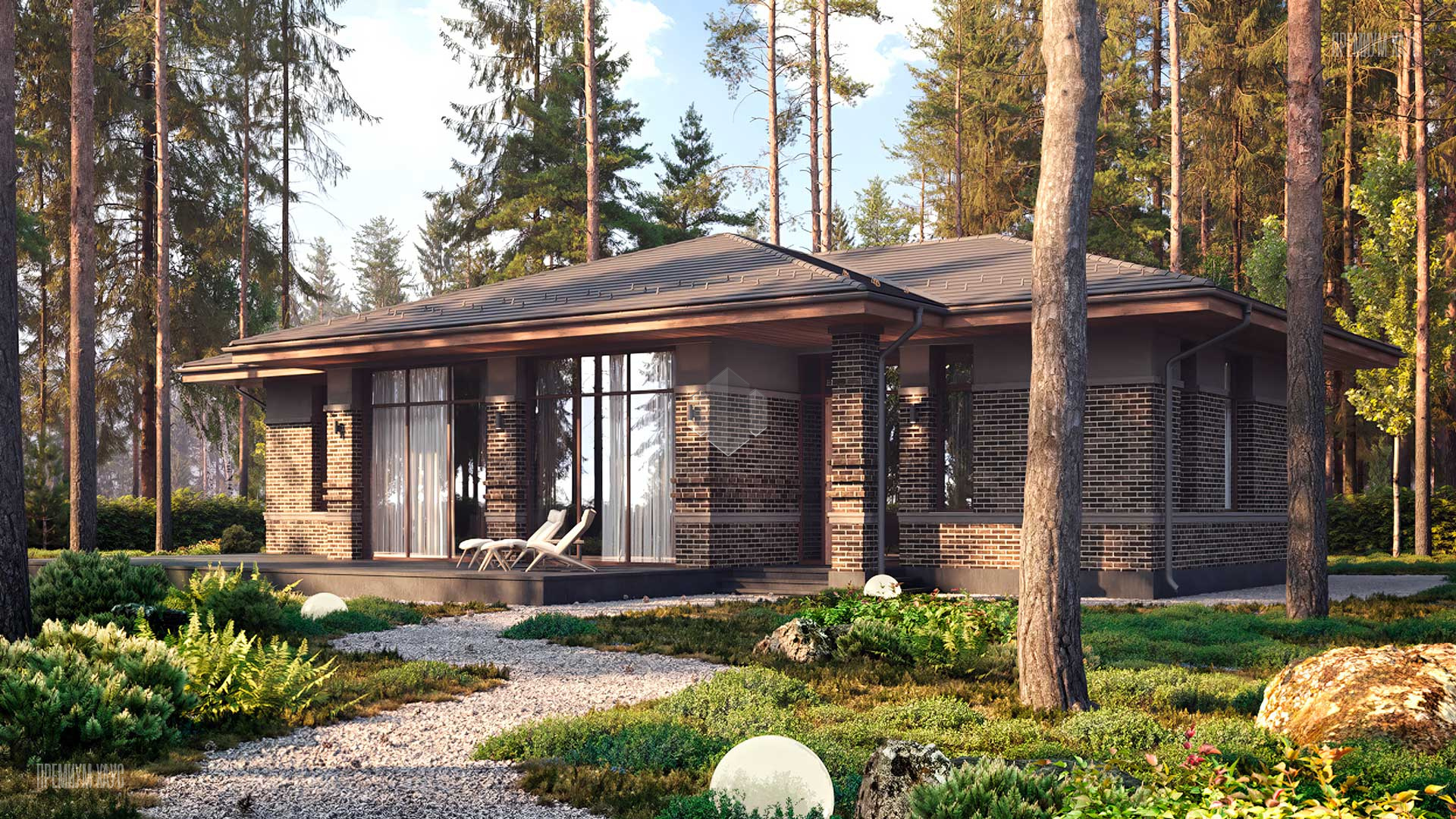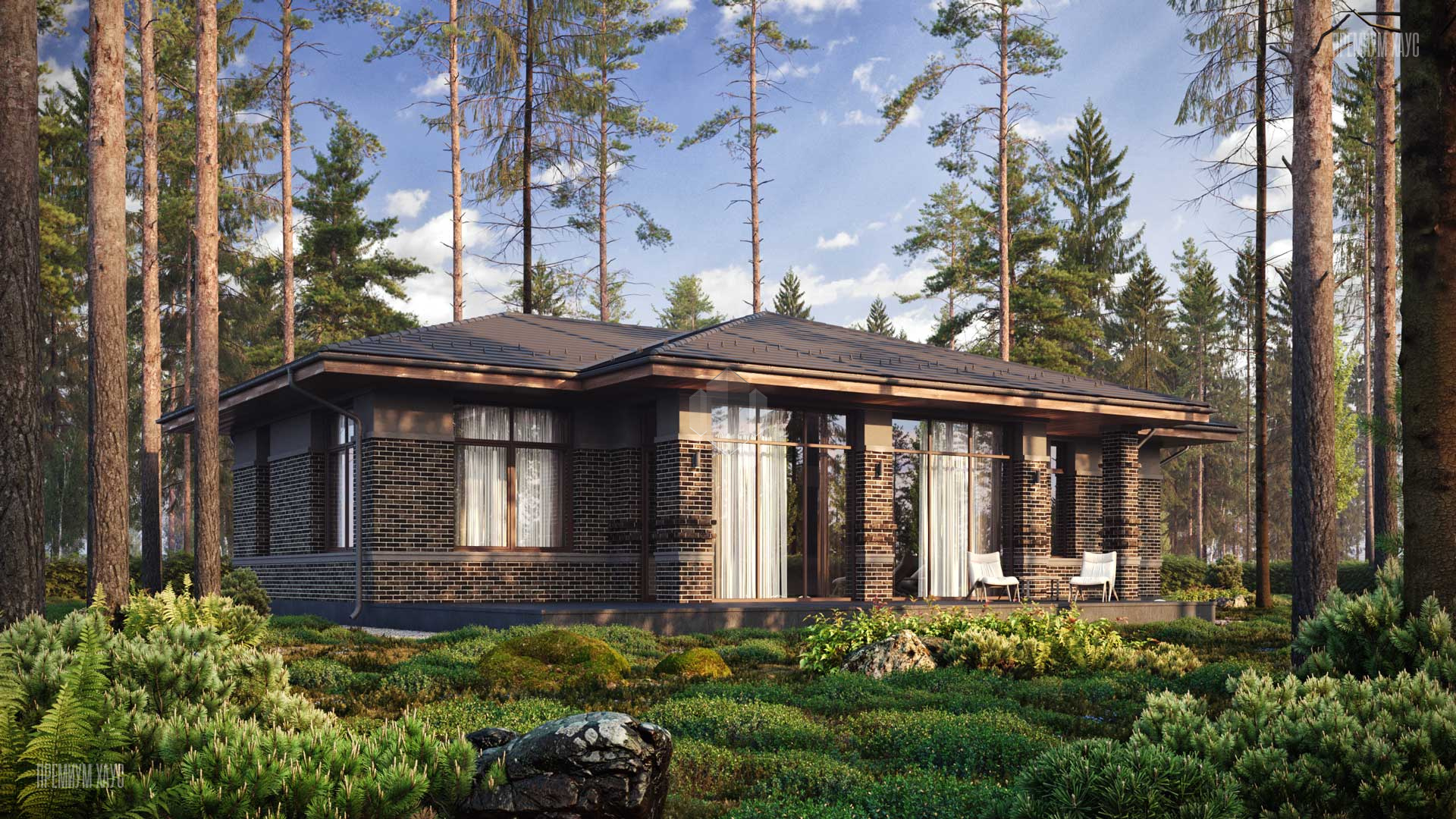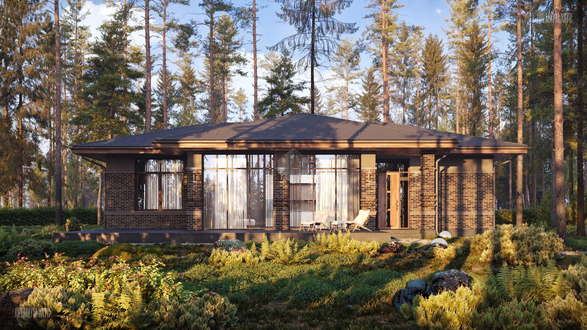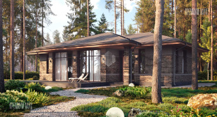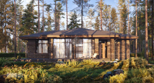• ФасадКомбинированный: облицовочный кирпич + декоративные панели