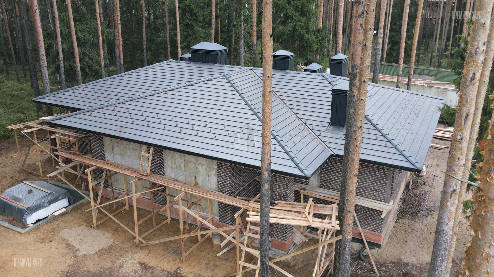 • КровляВальмовая с покрытием из цементно-песчаной черепицы