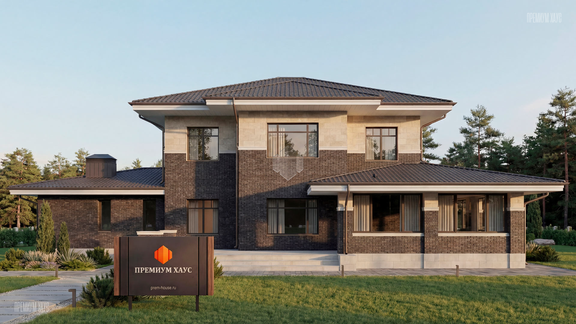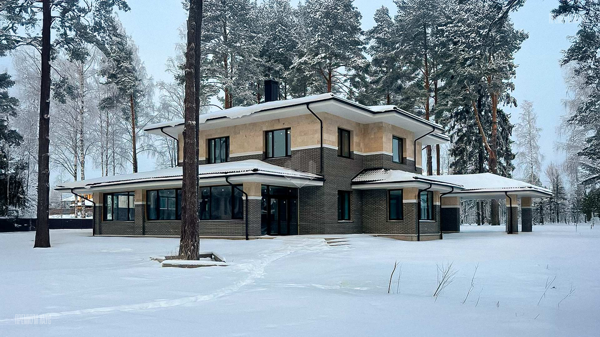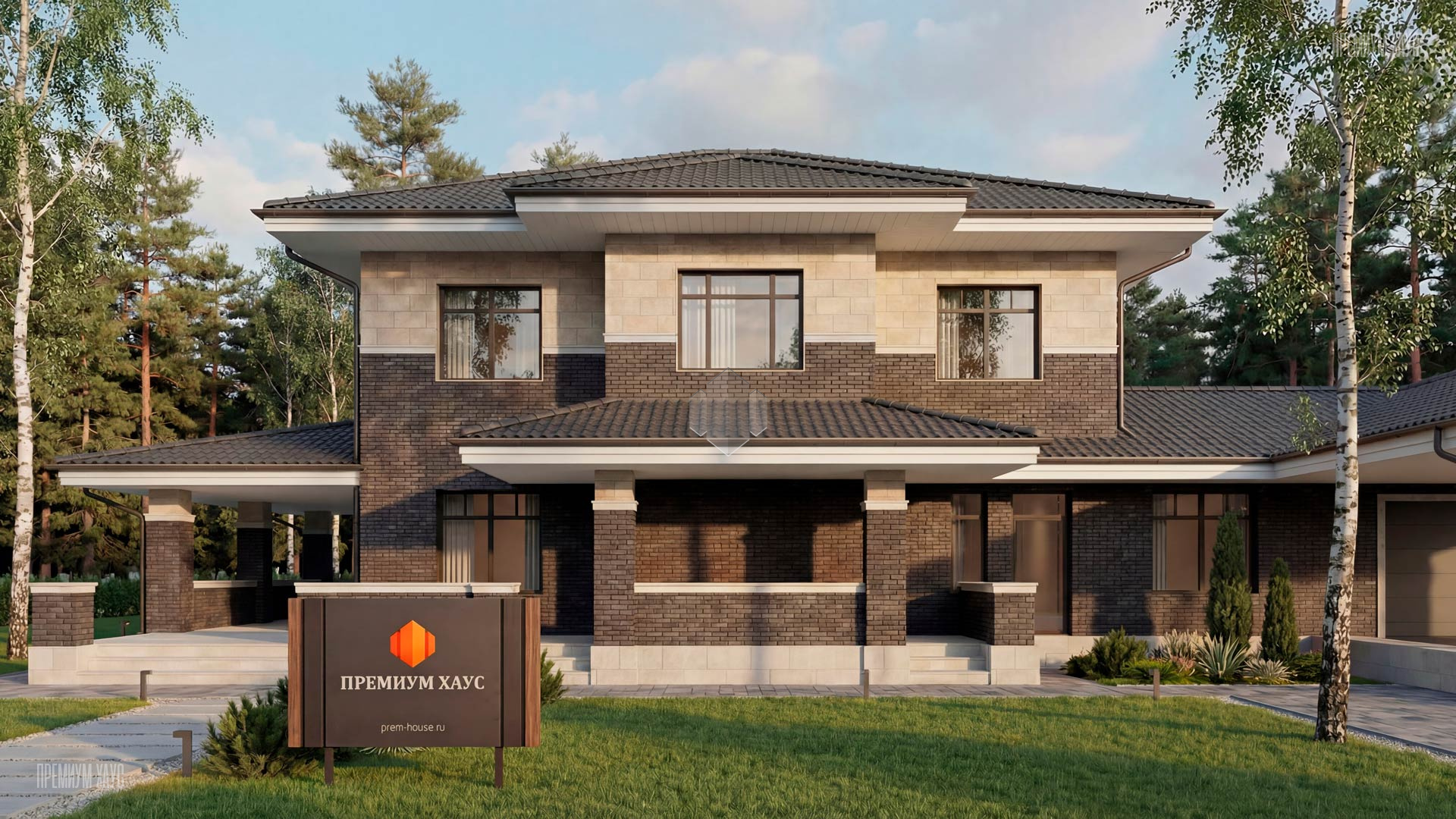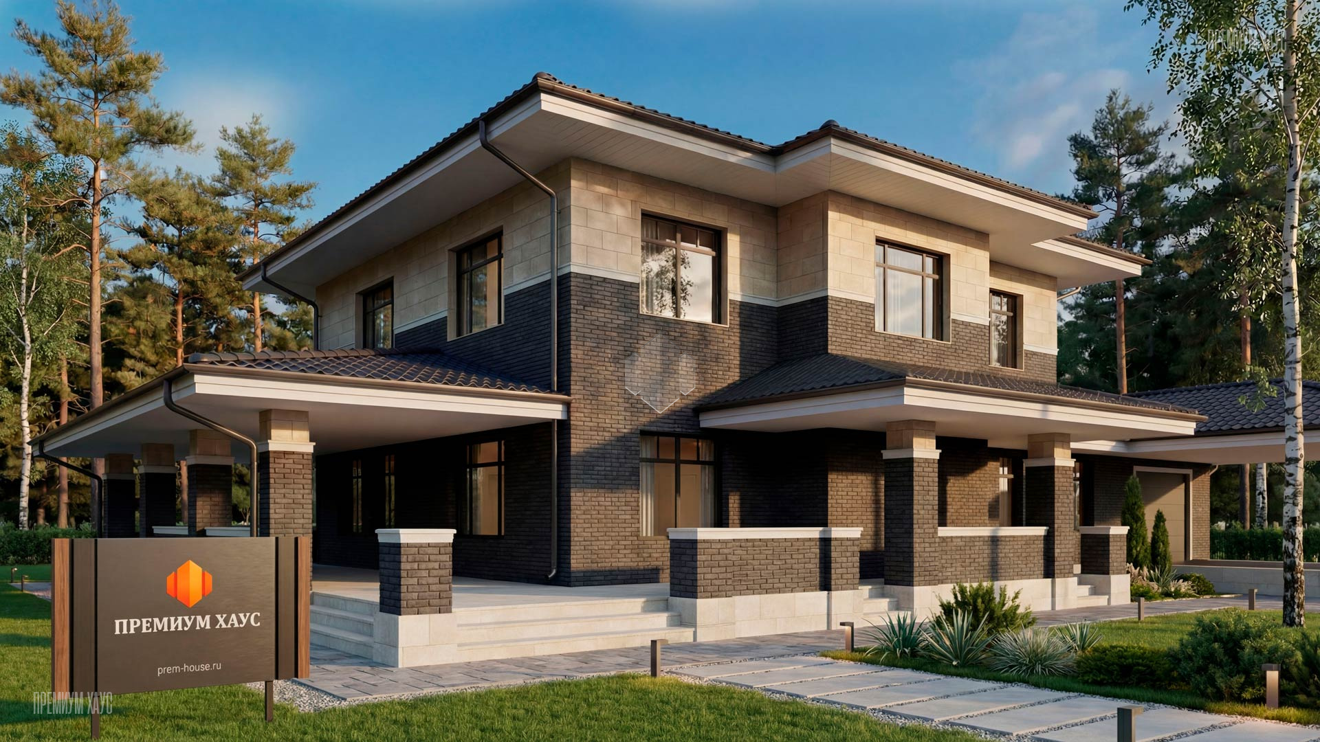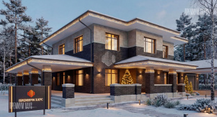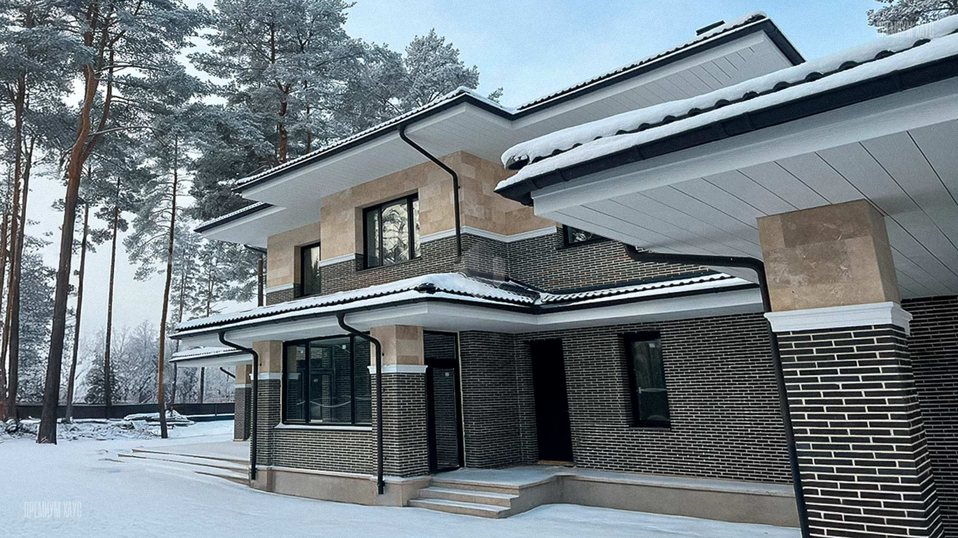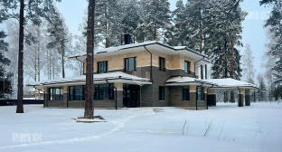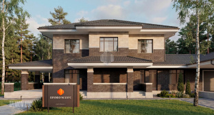 • ФасадКомбинированный: кирпич ручной формовки + планкен + декоративные элементы