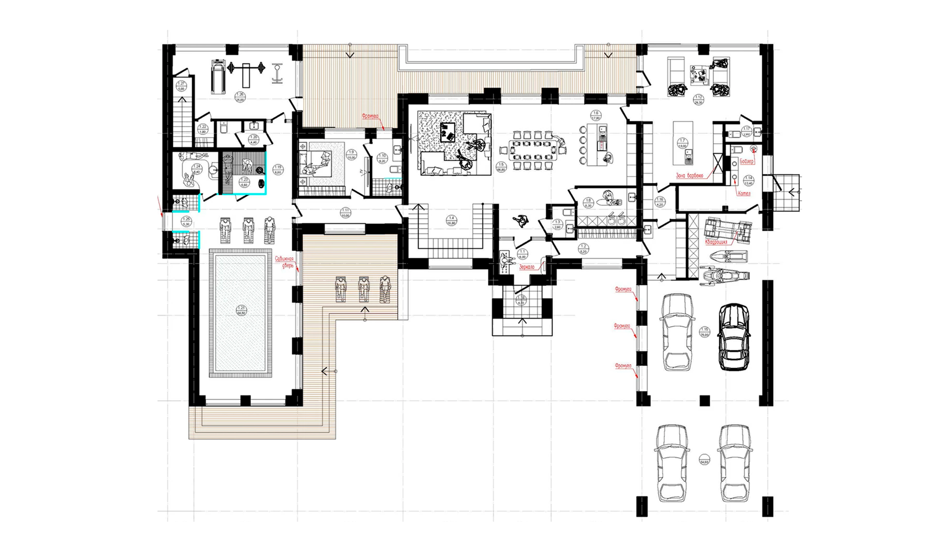 - ПрочееБассейн, цокольный этаж и гараж