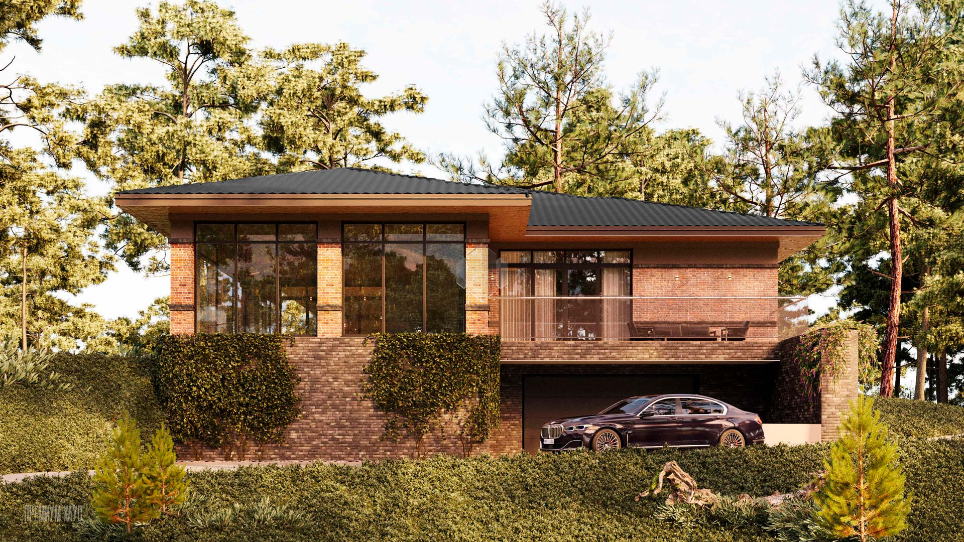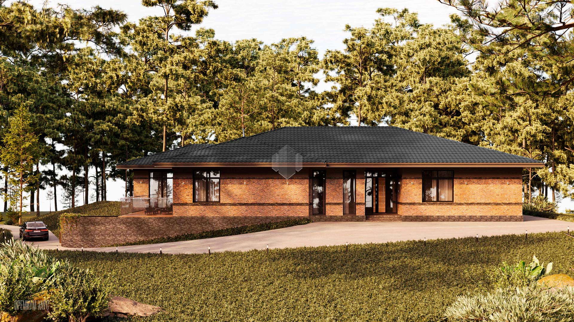 • ФасадКерамогранит + облицовочный кирпич