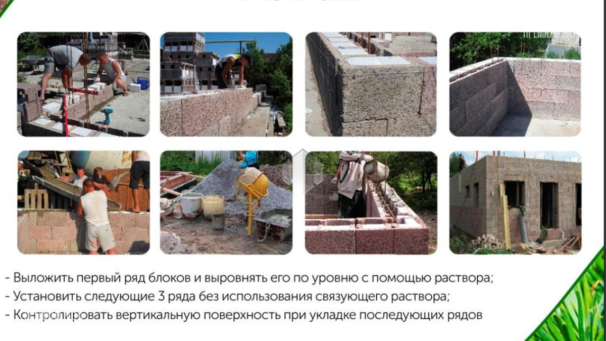 Данные блоки используются не только для укладки наружных стен, но и для межкомнатных перегородок. Для обеспечения высоких звуко- и теплоизоляционных свойств, блоки оснащаются специальными пенополистирольными вставками. Для создания углов, оконных или дверных проемов на рынке присутствуют блоки специальной формы, что значительно ускоряет процесс строительства.