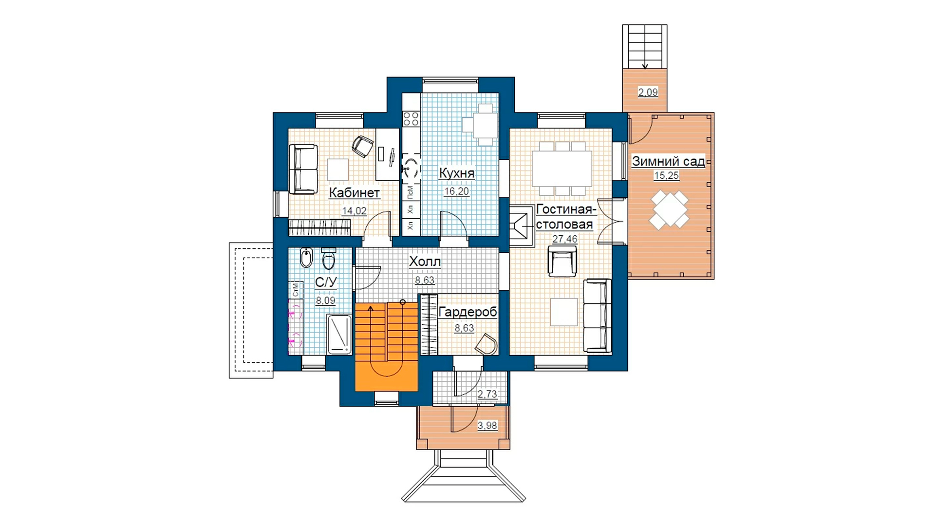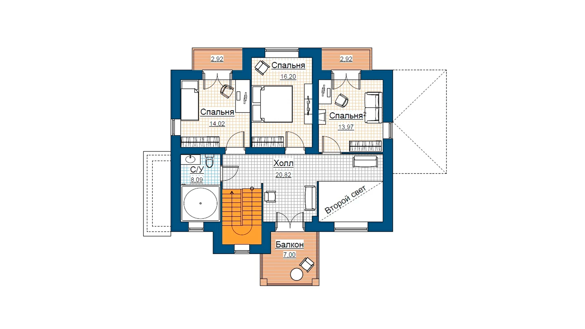 - Площадь 2 этажа86